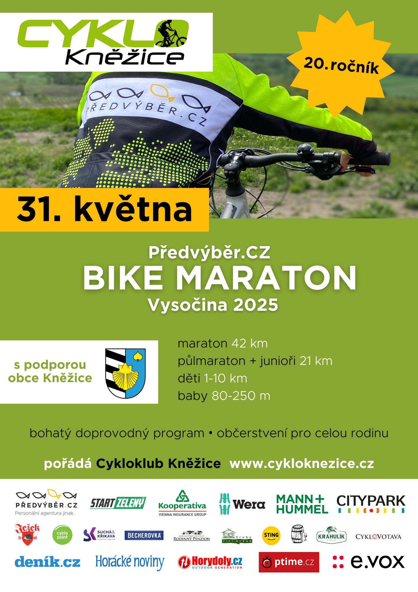 sobota 31. května 2025, 8:00 – 10:00 hod.! Prosím, dodržujte čas prezentace. Pozdě příchozí nebudou přihlášeni do závodu. Areál zámku Kněžice
